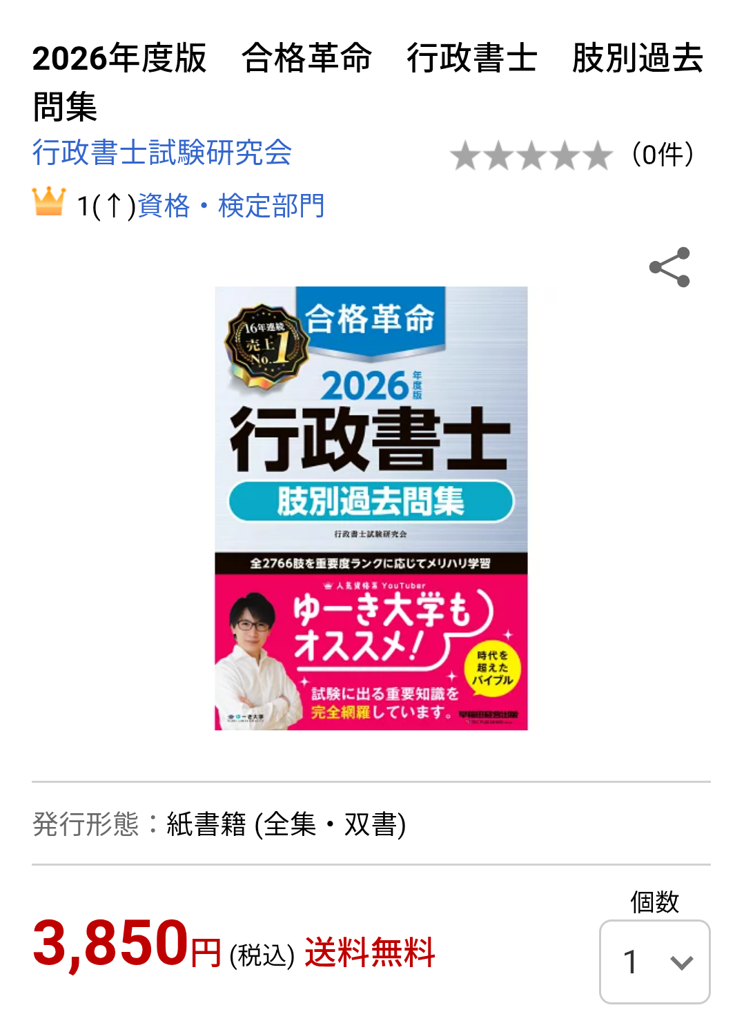 最新版のテキストと肢別過去問集は、どちらも人気資格系YouTuber「ゆーき大学」さんがオススメしていて、資格・検定部門で堂々のランキング上位。