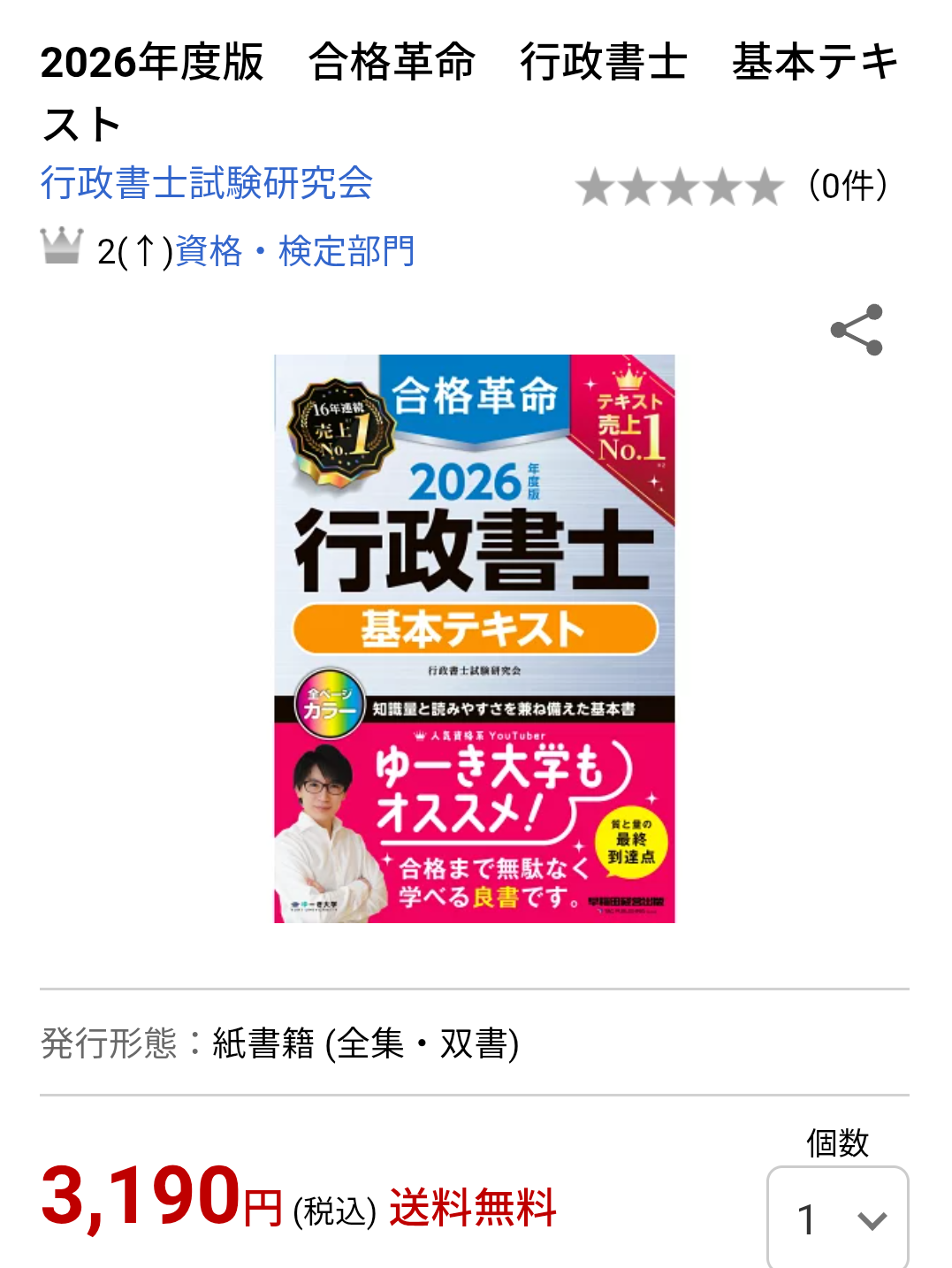 最新版のテキストと肢別過去問集は、どちらも人気資格系YouTuber「ゆーき大学」さんがオススメしていて、資格・検定部門で堂々のランキング上位。